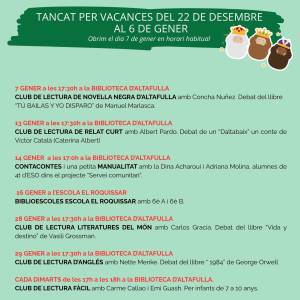 Agenda d'activitats del mes de gener de la Biblioteca d'Altafulla
