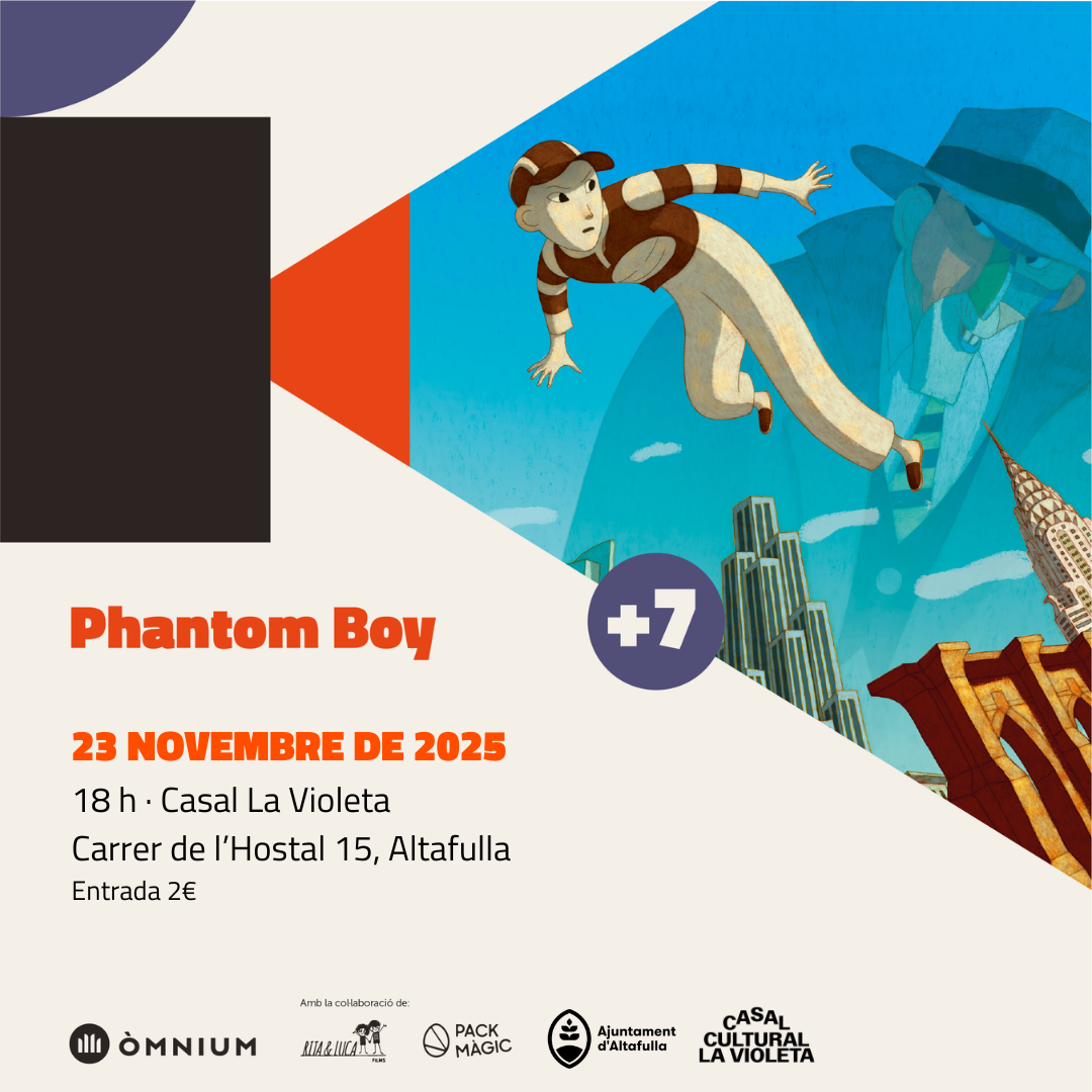 L'Ajuntament d'Altafulla i el Casal Cultural la Violeta, amb la col·laboració d'Òmnium Cultural, la Regidoria d'Infància i Joventut i Pack Màgic, us conviden a la projecció de la pel·lícula d'animació "Phantom Boy".