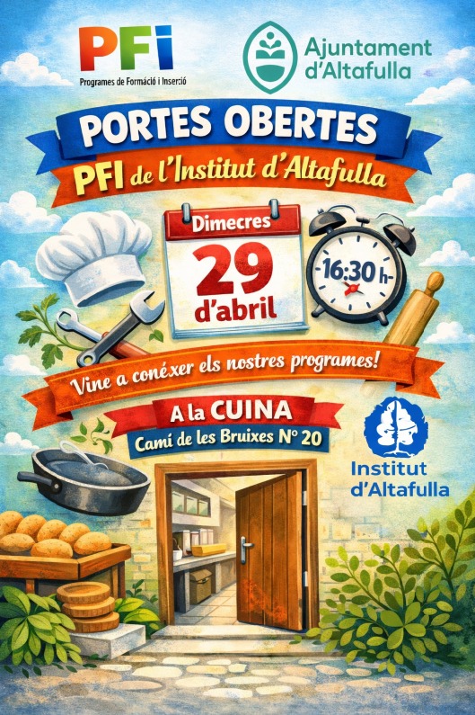 T’agradaria formar-te en el món de la cuina? Estàs buscant una oportunitat per aprendre un ofici i inserir-te al món laboral? L'Institut d'Altafulla t'obre les portes per presentar-te els seus Programes de Formació i Inserció (PFI).