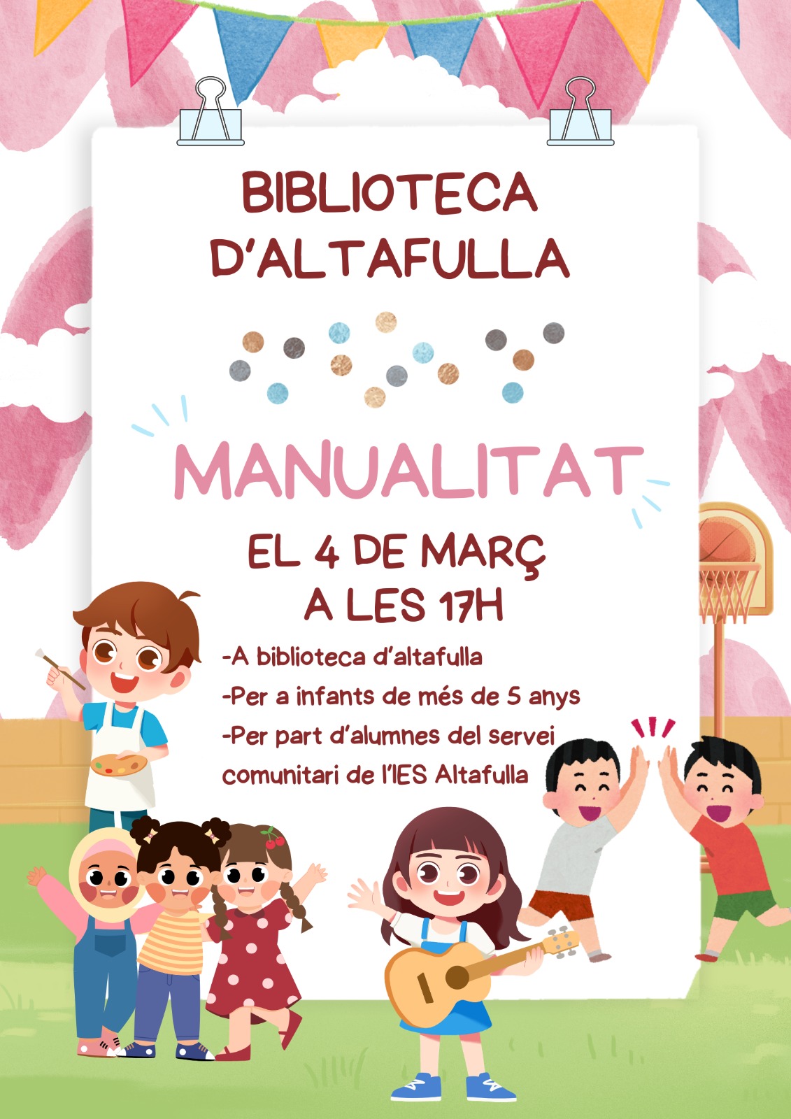 A la Biblioteca d'Altafulla continuem amb les manualitats gràcies als alumnes del Servei Comunitari de l'Institut d'Altafulla. La Pau i l'Iren ens faran una manualitat divertida pels nens i nenes de la Biblioteca.
