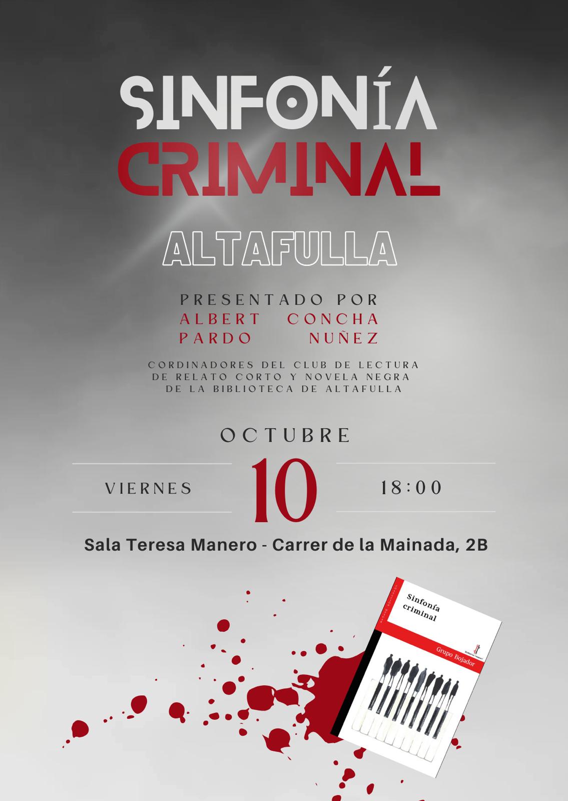 Aquest divendres 10 d’octubre a les 18 h, la Sala Teresa Manero acollirà la presentació del llibre Sinfonía Criminal, editat per Grupo Jovalder.