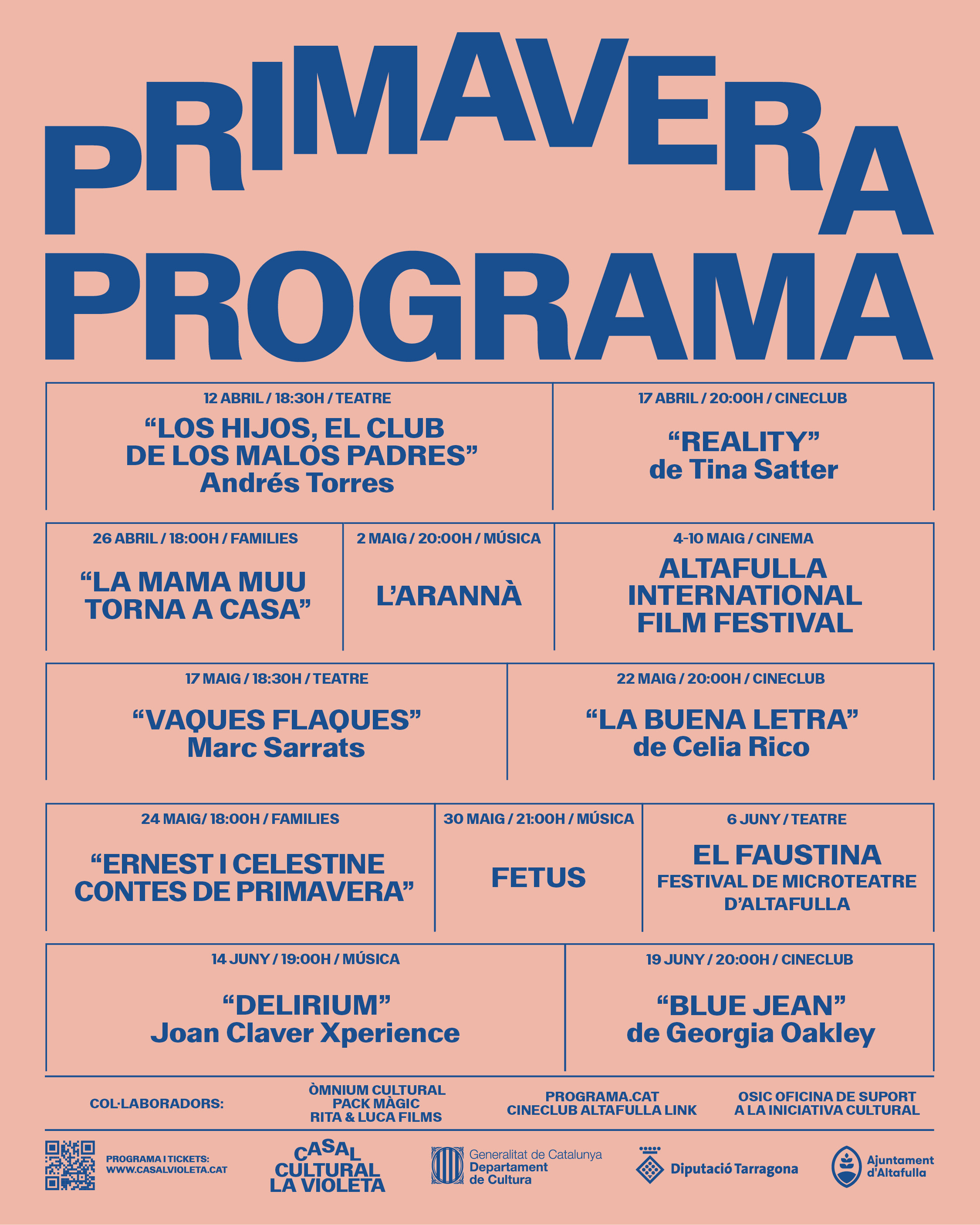 Arriba la nova programació de Primavera al Casal Cultural la Violeta d'Altafulla, una agenda farcida de cultura amb propostes de teatre, cinema i música per a tots els públics. Gaudeix d'una selecció artística de qualitat des de l'abril fins al juny.