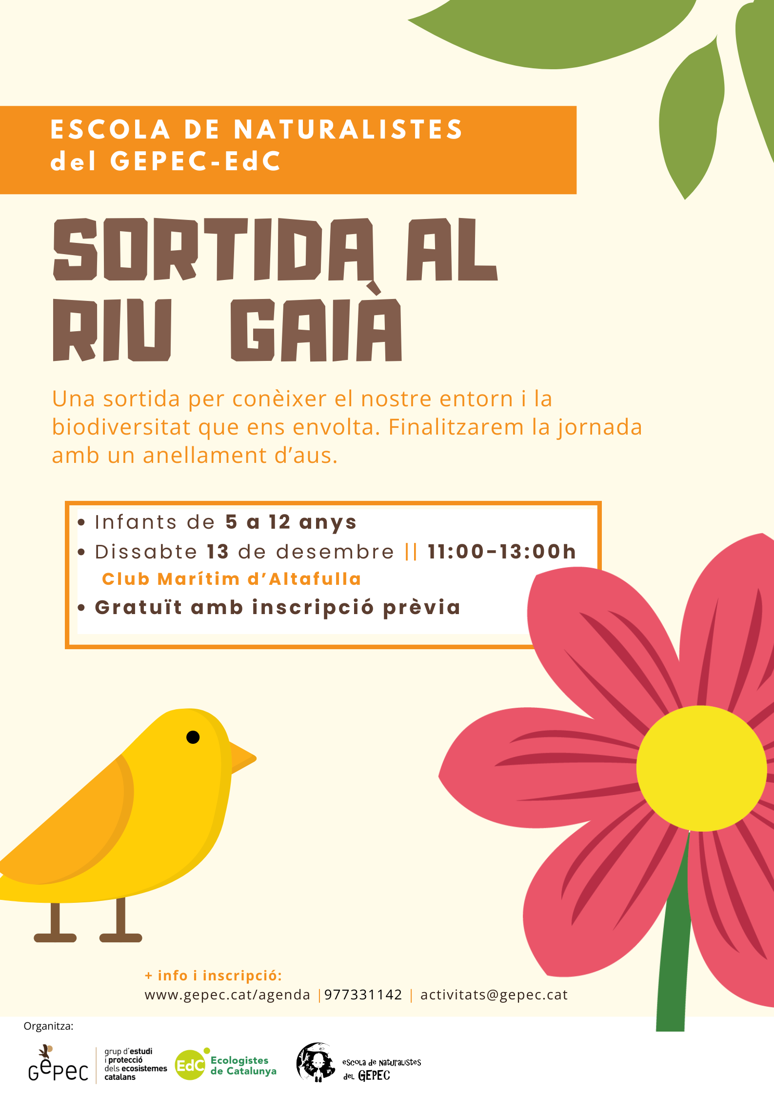 L'Escola de Naturalistes del GEPEC-EdC organitza una activitat per a que els més joves descobreixin la riquesa natural de la zona amb una Sortida al Riu Gaià.
