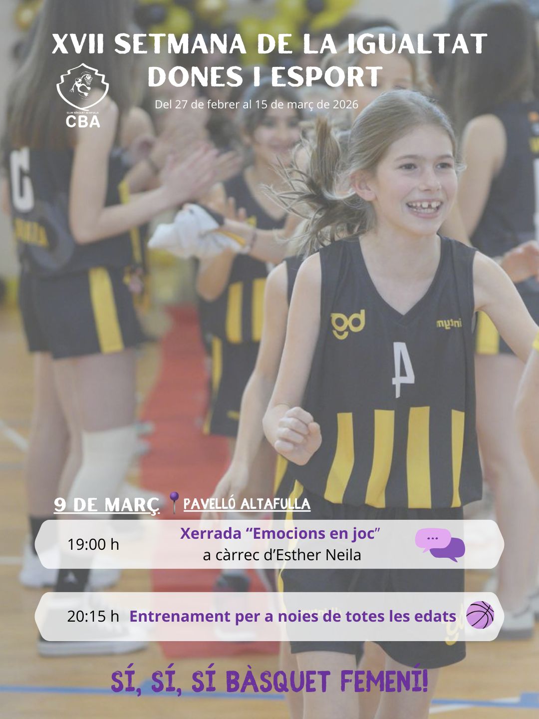 En col·laboració amb el CBA, celebrem l'esport femení amb una jornada especial sota el lema "Sí, sí, sí, bàsquet femení!".