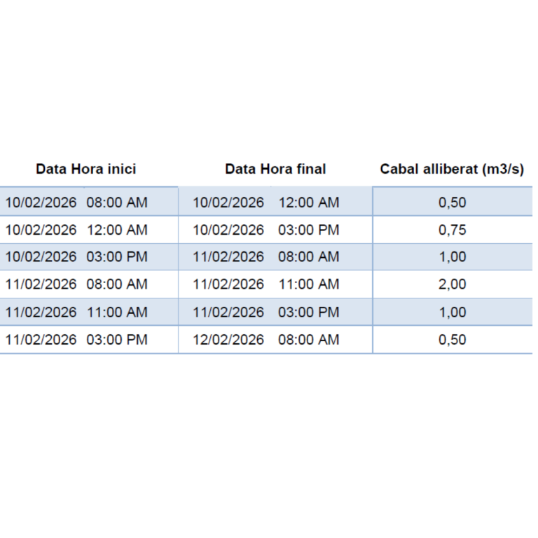L'alliberament finalitzarà el dijous 12 de febrer a les 08:00 hores, moment en què es retornarà al cabal ambiental ordinari establert.