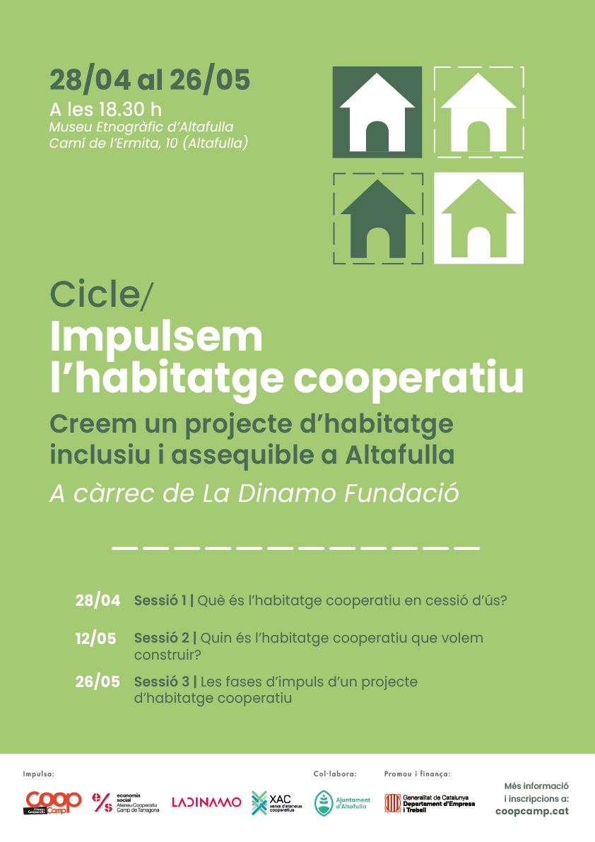 L'Ajuntament d’Altafulla, en col·laboració amb La Dinamo Fundació, posa en marxa el cicle “Impulsem l’habitatge cooperatiu”, una iniciativa que neix amb l’objectiu de crear un projecte d’habitatge inclusiu i assequible al municipi. El programa consta de tres sessions informatives que tindran lloc entre els mesos d'abril i maig al Museu Etnogràfic d’Altafulla.