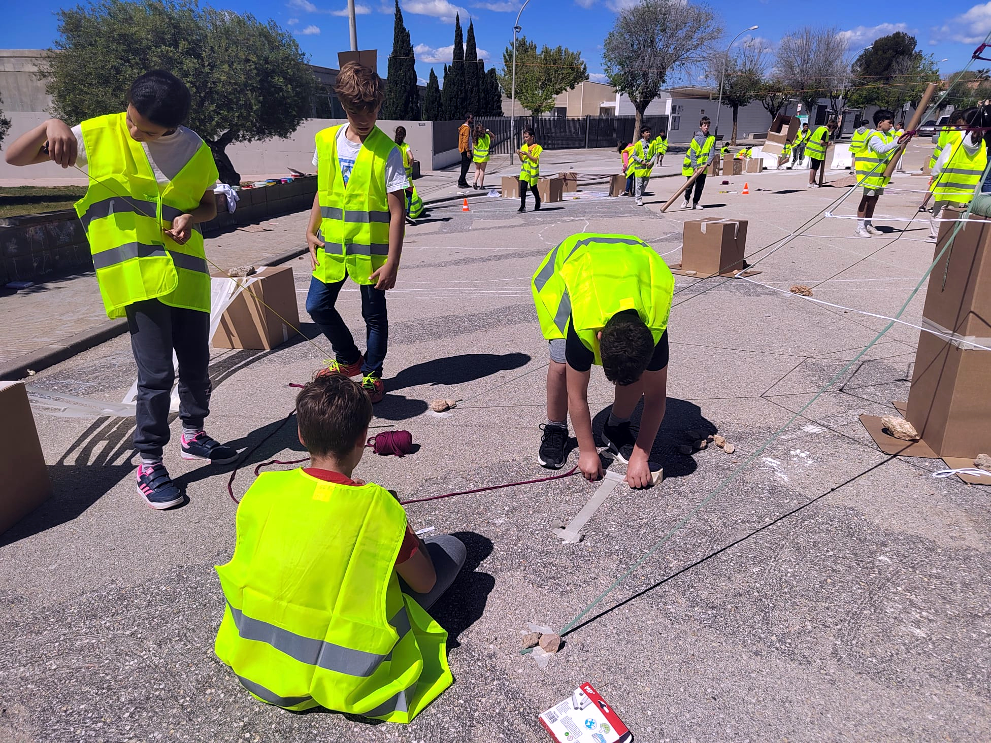 L’alumnat de la Portalada ha treballat les propostes a classe aquests darrers dies, amb la implicació del professorat, i avui les han començat a plasmar físicament a la plaça, com ha explicat Lluís Delclòs, un dels responsable de L’Escamot Cooperativa, que ha qualificat l’activitat de transversal i innovadora. Els infants han proposat un ventall de jocs, des d’estructures com la piràmide i la tirolina, gronxadors adaptats per als infants amb discapacitats, fins als jocs més tradicionals com la xarranca.