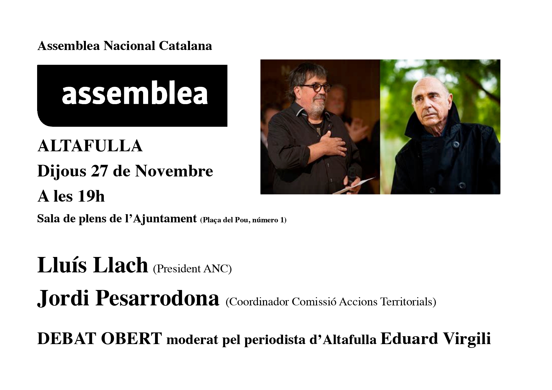 El debat serà moderat pel periodista d'Altafulla Eduard Virgili.