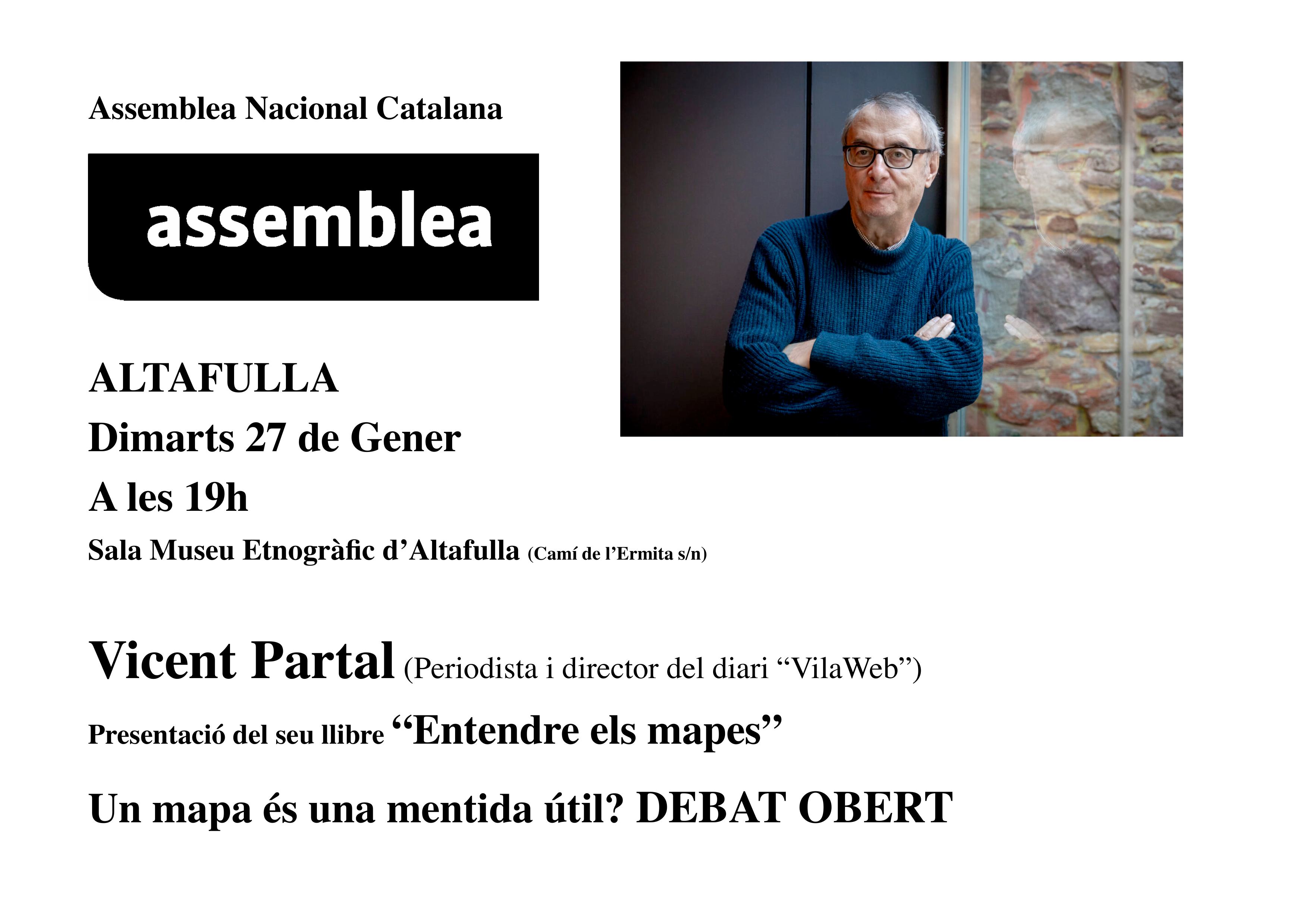 El periodista i director de VilaWeb, Vicent Partal, presentarà el seu llibre 'Entendre els mapes' a Altafulla.