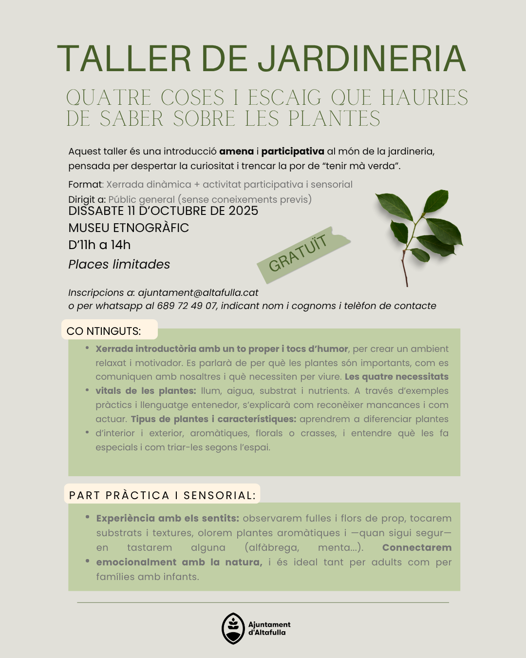 Aquest taller és una introducció amena i participativa al món de la jardineria, pensada per despertar la curiositat i trencar la por de "tenir mà verda".