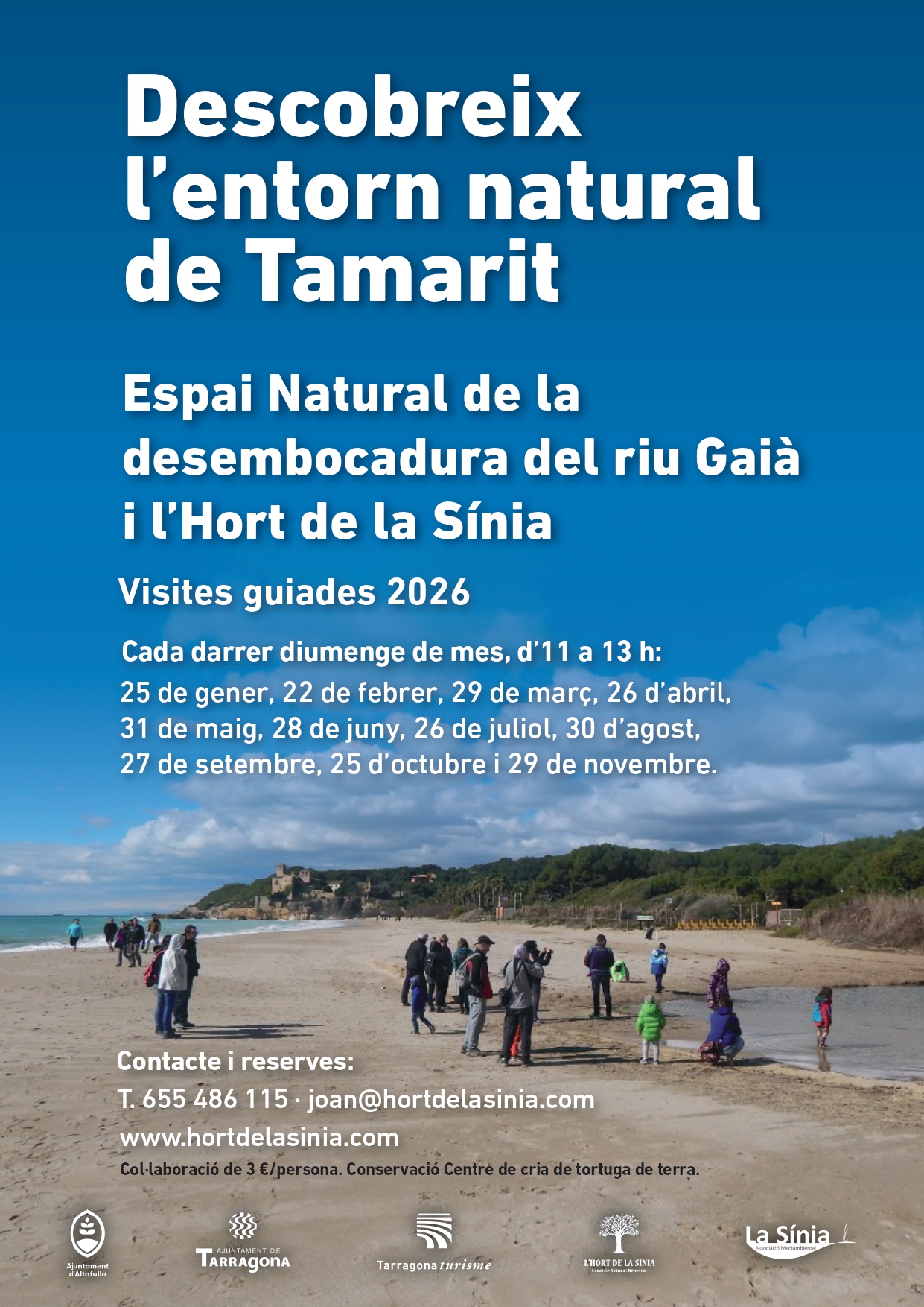 Preu: Col·laboració de 3 € per persona. Els fons es destinen a la conservació del Centre de cria de tortuga de terra.